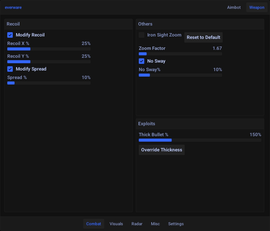 Настройки оружия