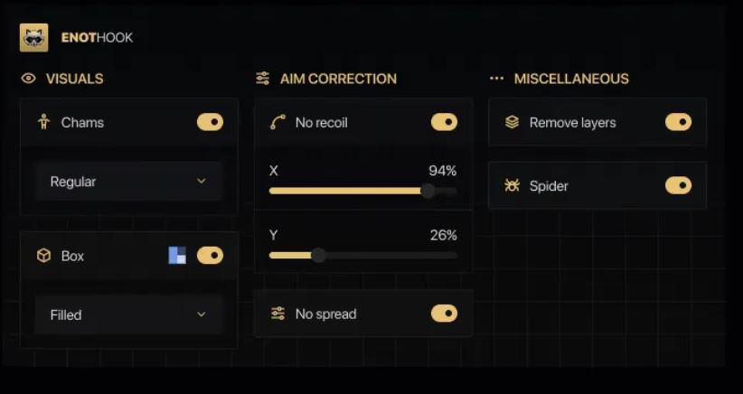 Enot is a simple and affordable software for Rust that gives you the most important: No Recoil ESP. No overloaded settings, no unnecessary functions. Only what is really needed for a comfortable game. And all this starts from 250 rubles.