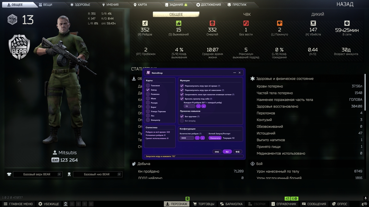 Kd Dropper: Perfect stats and maximum stamina for Tarkov In Escape from Tarkov, your account is your business card. A high K/D (homicide/death rate) often attracts unnecessary attention and suspicion. And low stamina and strength skills make you gasp after the first sprint, while opponents are already flying around the map.